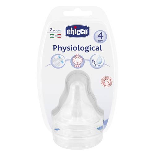 chicco Physiological Tettarella Fisiologica in silicone studiata e testata in collaborazione con autorevoli specialisti per simulare quanto più possibile la fisiologia del seno materno durante la poppata.